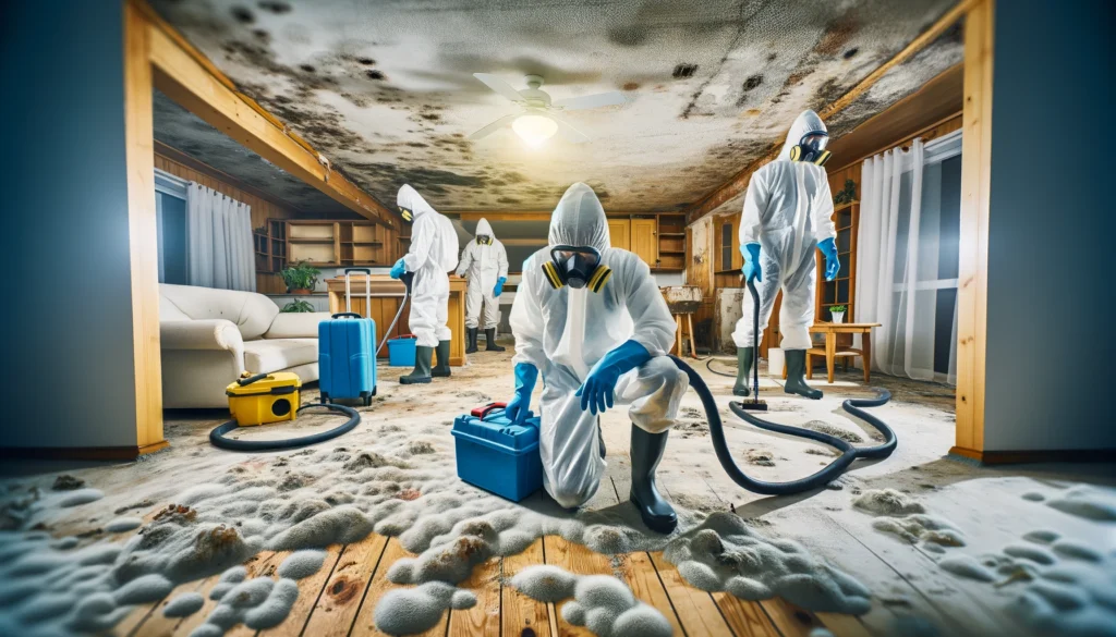 The process includes inspection, containment, safe removal, cleaning, and air filtration to ensure spores are eliminated. Professionals also address the source of moisture to prevent future mold growth.